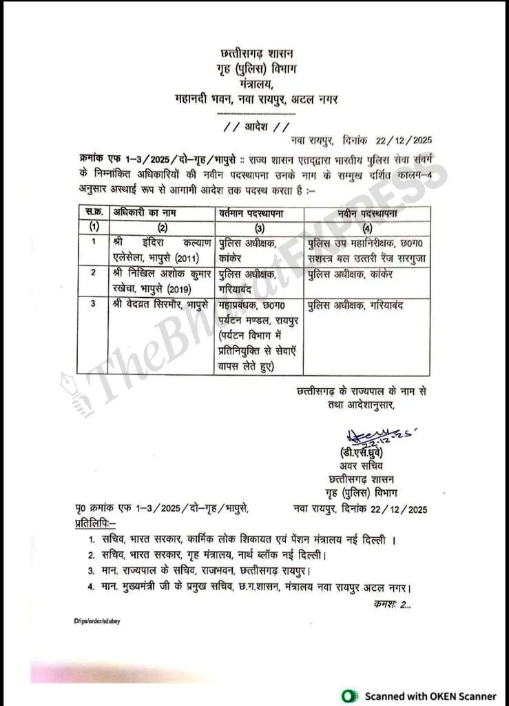 CG IPS Transfer News: बाद बड़ा प्रशासनिक एक्शन, छत्तीसगढ़ में बदले गए इन जिलों के SP, राज्य सरकार ने जारी किया आदेश