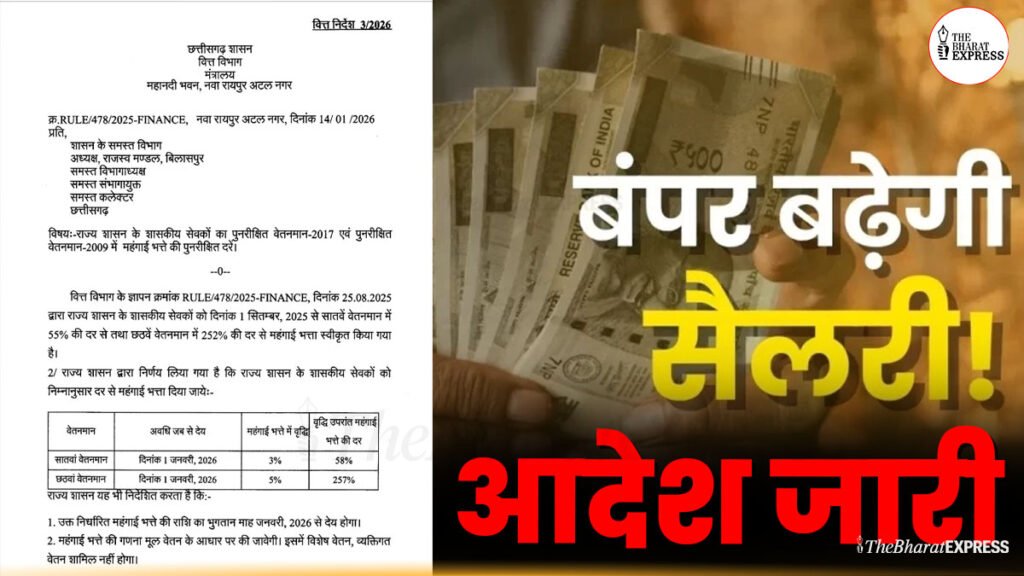 CG महंगाई भत्ता आदेश BREAKING: वित्त विभाग ने जारी किया डीए बढ़ोतरी का आदेश, 3% और 5% की बढ़ोतरी, एरियर्स पर बड़ा फैसला