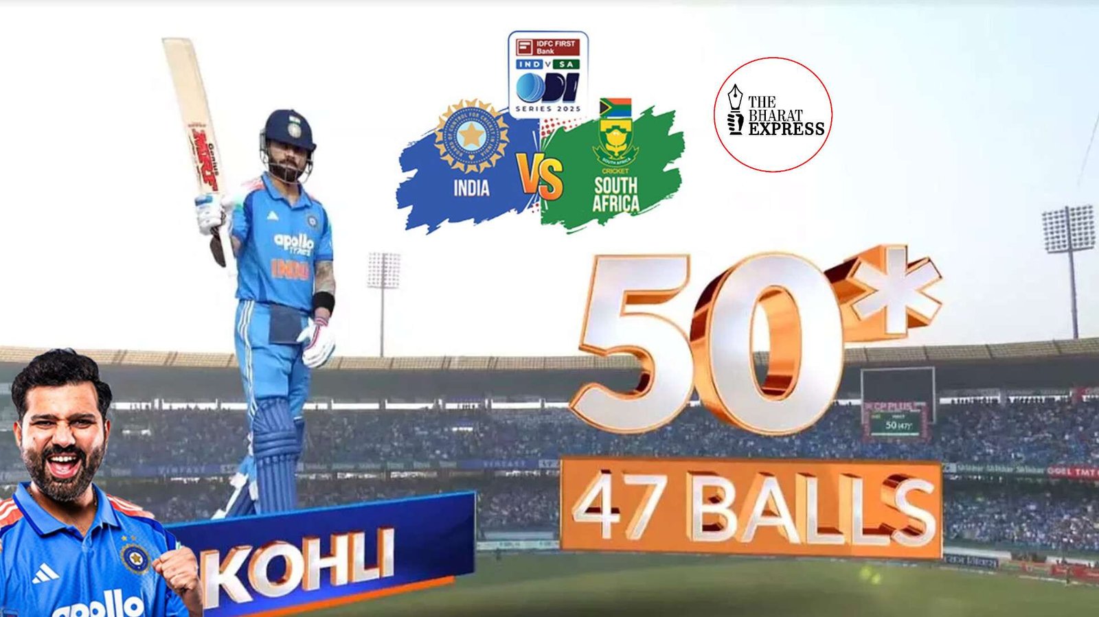 रायपुर। शहीद वीर नारायण सिंह अंतरराष्ट्रीय क्रिकेट स्टेडियम में चल रहे दूसरे वनडे मैच में टीम इंडिया के स्टार बल्लेबाज़ विराट कोहली ने शानदार अर्धशतक जड़ा, जिससे दर्शकों में उत्साह का माहौल बन गया। भारत और दक्षिण अफ्रीका के बीच खेले जा रहे इस हाई-वोल्टेज मुकाबले में भारतीय टीम लगातार 20वां टॉस हार गई, जिसके बाद दक्षिण अफ्रीका ने पहले गेंदबाज़ी का फैसला किया।