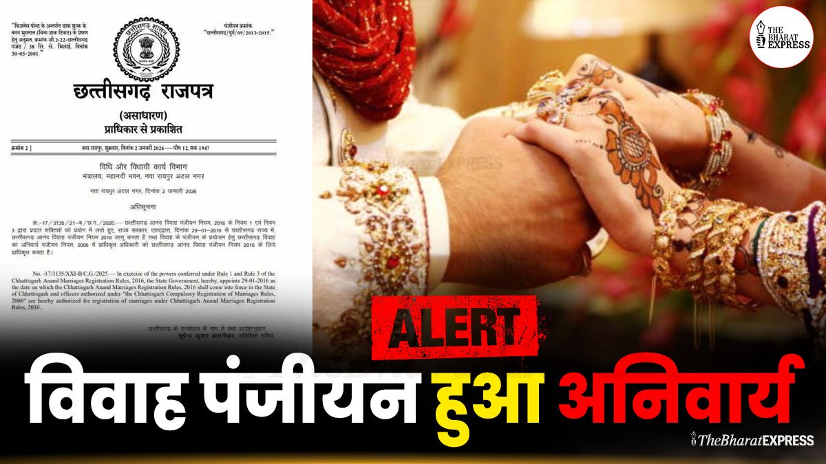 Chhattisgarh Marriage Registration : छत्तीसगढ़ में विवाह पंजीयन हुआ अनिवार्य, सरकार ने जारी किया आदेश
