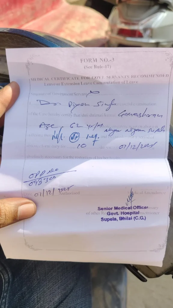 भिलाई न्यूज: मृत व्यक्ति के नाम पर मेडिकल सर्टिफिकेट जारी, सुपेला अस्पताल में फर्जीवाड़े का आरोप