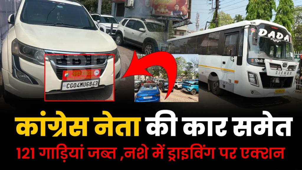 Raipur Traffic Action: कांग्रेस नेता की कार समेत 121 वाहन जब्त, शराब पीकर ड्राइविंग पर बड़ी कार्रवाई…4 घंटे में 121 चालकों पर केस दर्ज