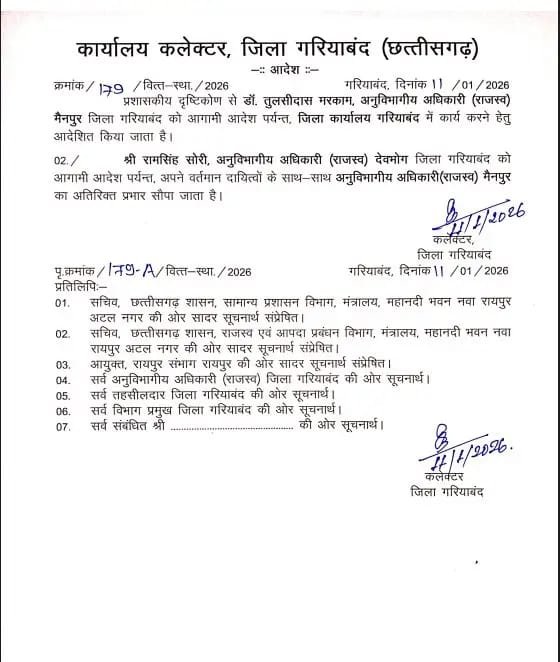 ✔️ एसडीएम तुलसीदास मरकाम को पद से हटाकर कलेक्टरेट अटैच कर दिया